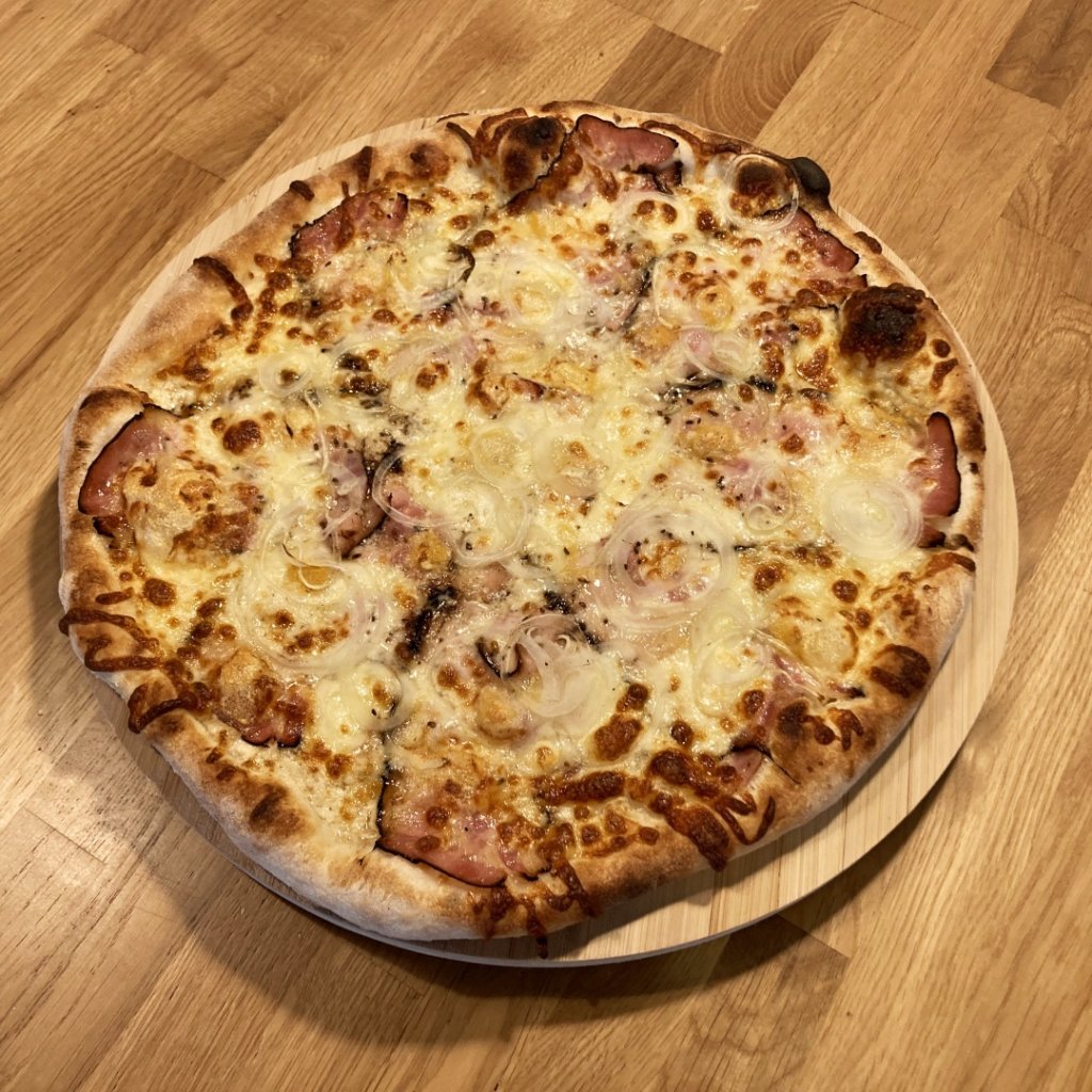 bílý základ, mozzarella, tvarůžky, kmín, cibule (slanina volitelná)